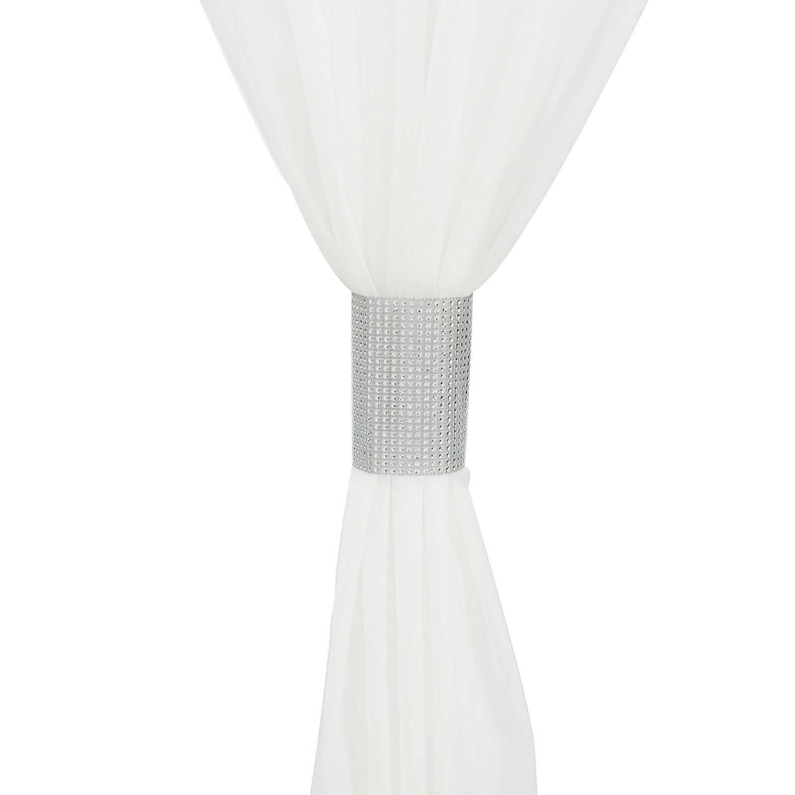 4 Pack Silver Rhinestone Mesh Velcro Backdrop Curtain Bands, Large Chair Sash Clip Tie Backs - 5"X10"